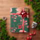 Green red watercolor floral wrapping paper featuring pretty boho wildflower meadow details with elegant watercolor boho wild flowers, perfect for holiday, spring, fall, or autumn gift wrapping.