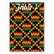 Table card with green, dark red, and yellow gold on black Kente Cloth. Customize the table number using the easy template. Font style, font size, and font colour are customizable. Classic and chic, the perfect wedding reception table card.