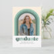 Ce faire-part de graduation amusant dispose d'une arche avec différentes nuances de vert autour d'une seule photo. L'arrière de la carte dispose d'un motif à bande de coordination ainsi que d'un espace pour un message personnel ou des détails d'invitation pour une célébration de graduation.