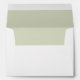 Pastel sage green inside. Return address added on back flap to save on return address labels.