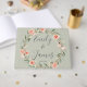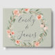 Customizable wedding guest book with a romantic rose wreath design. Personalize with your names and wedding date.