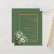 A BUDGET Wedding Invitation on a paper sheet with a lovely bouquet of green roses and white floral theme and gold frame.