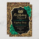 60th Birthday Party Invitation. Elegant floral emerald green design with faux glitter gold and roses. Features leopard cheetah animal print and script font. Perfect for a stylish womens bday celebration. Can be customized for any age! Printed Zazzle invitations or instant download digital printable template.