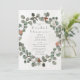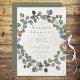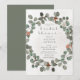 This wedding shower invitation design features a simple, soft watercolor green and rust eucalyptus wreath on a vintage distressed cream background. The back is a simple sage green colour. Created by Simply Farmhouse Press.