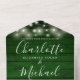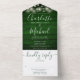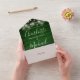 All in one wedding invitation pretty string lights, signature style names and chic typography on a rustic green wood background. The invitation includes a perforated RSVP card that can be individually addressed or left blank for you to handwrite your guest's address details. Designed by Thisisnotme©