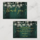 An elegant emerald green rustic barn wood string lights wedding thank you reception card, personalized with a special message and the bride and groom's names. Designed by Thisisnotme©