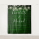 Featuring pretty string lights and a chic typography signature script on a green wood panels background, this rustic wedding photo booth backdrop can be personalized with your names and special date. Designed by Thisisnotme©