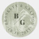 Modern Classic Moss Green Rustic Woodgrain Texture Monograms, Winter Wedding Party Favour Sticker / Envelope Seal.