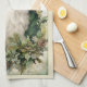 Green Santa Claus Framed in Christmas Foliage Kitchen Towel