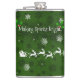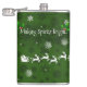 Enjoy your favourite adult beverage with this festive Green Santa's Sleigh and Reindeer Flask. Flask design features Santa's sleigh adorned with holly berries and pulled by his reindeer against a green background with falling snowflakes and the saying "Making Spirits Bright" which you can leave or personalize with your own saying. Additional gift and holiday items available with this design as well.