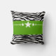 Coussin moderne et tendance Sassy Star Zebra avec un arrière - plan design en zèbre noir et blanc et une bordure verte chartreuse ornée d'un motif étoilé amusant. Ce design girly peut être customisé avec le texte personnalisé de votre choix. Cliquez sur "Customiser" pour trouver d'autres options de personnalisation.