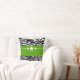 Trendy and modern Sassy Star Zebra Pillow featuring a chic black and white zebra print background and a bold chartreuse green border adorned with a fun star motif. This girly design may be customized with the personalized text of your choosing. Click "Customize It" to find more personalization options.