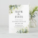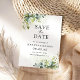 Green Save The Date Card. Cette invitation à la douche nuptiale élégante et élégante présente de magnifiques aquarelles peintes à la main. Trouvez les articles correspondants dans la Collection Florale Eucalyptus de verdure.