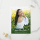 Make sure all your friends and relatives will be able to celebrate your daughter’s milestone graduation! Send out this girly, stunning, simple, modern, personalized photo “Save the Date” postcard for an event to remember. A fun, playful visual of white script handwriting and cute, playful hearts, along with her name, class year, and school, overlay a hunter green band. On the front, add the photo of your choice and personalize the custom text with your grad’s name, school and class year. Your custom message and return address adorn the back. Matching invites, thank you cards, cap toppers, plaques and other graduation goodies are also available in this trendy and stylish collection. Guaranteed to add stylish fun to her special occasion!