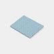 This Post-It notepad has an art deco design of green half circles connect with lines on a field of blue.