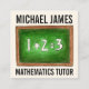 Business card design features an original colour illustration of a green chalkboard with a simple math equation. Great for a math teacher or tutor. Simply personalize with your information.