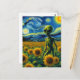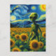 Green Scifi Alien in a Van Gogh Sunflower Field Postcard