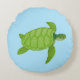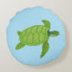 Green sea turtle on turquoise background round pillow