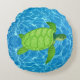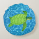 Green Sea Turtle on Turquoise Water Background Round Pillow