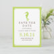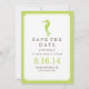 Stylish save the date announcements perfect for a summer or tropical destination wedding feature a beautiful illustration of a seahorse and an elegant nautical stripes pattern on the back. Visit our store for more colour options and matching products.