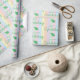 Green Seashells Happy Wedding Text Rainbow Striped Wrapping Paper