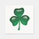 This design is a green shamrock. The shamrock has three leaves and is a dark green. This green shamrock design looks great on this Paper Napkins