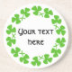 This St. Patrick's Day-themed product features your own words or slogan (which you fill in) surrounded by a cheery Kelly green shamrocks circular border or frame against a crisp white background. To further customize this design, you can change the background color by clicking the Customize button above. You can also change the font type, size and color to whatever you wish.