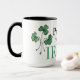 A fun black and white Ringer Coffee Mug with green Shamrock leaves and 'Proud to be Irish' in Celtic scripts. Part of the Posh & Painterly 'Shamrocks' collection.