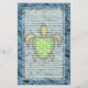 Digital painting of a sea turtle with a green octagonal patterned shell. Sea turtle art from wingedturtle.com. Lined stationery.