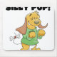 The silly pup on these puppy dog T-shirts, mousepads, stickers, and other items seems to be playing a little trick by tying a bone to his tail!