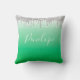 Green Silver Glitter Dripping Monogram Throw Pillow