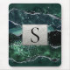 Green Silver Glitter Marble Geode Agate Monogram Mouse Pad