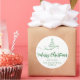 Green Silver Ribbon Tree Merry Christmas Script Classic Round Sticker