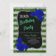 Elegant green and silver stripes glitter and deep blue roses birthday party invitation for women of any age. The age can be changed for any age. Text can be changed to anything to fit your event. Fonts, font colour and text are completely customizable! Paper shape and type can be customized to fit your budget and taste!