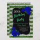 Green Silver Stripes Glitter Deep Blue Roses Invitation