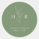 Green Simple Minimal Monogram Botanical Wedding Classic Round Sticker