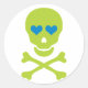 Green Skull Crossbones & Heart Eyes Classic Round Sticker