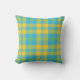 Green, Sky Blue, Yellow Plaid Pattern Throw Pillow