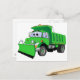 A whimsical green dump truck ready to hit the construction sites and haul the heavy loads or plow the snow covered roads to provide safe road travel.