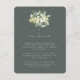 A dark grey green flat wedding reception enclosure card featuring an elegant bouquet/posy of hand painted snowberries and eucalyptus on the front and a wreath on the back of the card. All text is fully editable and the scattered dots on the front and back can be deleted before ordering if you would prefer. This card is available with alternative botanical designs, in a landscape format, and in different colours. Please view the Collection in my store to see all options and coordinating items.
