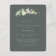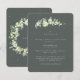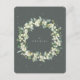 A dark grey green flat wedding enclosure card featuring an elegant stem of hand painted snowberries and eucalyptus on the front and a wreath on the back of the card. All text is fully editable and the scattered dots on the front and back can be deleted before ordering if you would prefer. This card is available with alternative botanical designs, in a landscape format, and in different colours. Please view the Collection in my store to see all options and coordinating items.