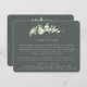 A dark grey green flat wedding enclosure card for wedding travel information or for directions if your reception is at a different venue. Featuring an elegant stem of hand painted snowberries and eucalyptus on the front and a wreath on the back of the card. All text is fully editable and the scattered dots on the front and back can be deleted before ordering if you would prefer. This card is available with alternative botanical designs, in a portrait format, and in different colours. Please view the Collection in my store to see all options and coordinating items.