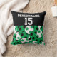 Pillow. Featuring a collage of soccer balls in green, white and black colour is ready for you to personalize with the name and sport number. ✔NOTE: ONLY CHANGE THE TEMPLATE AREAS NEEDED! 😀 If needed, you can remove the text and start fresh adding whatever text and font you like. 📌If you need further customization, please click the "Click to Customize further" or "Customize or Edit Design" button and use our design tool to resize, rotate, change text colour, add text and so much more. ⭐This Product is 100% Customizable. Graphics and / or text can be added, deleted, moved, resized, changed around, rotated, etc... ⭐99% of my designs in my store are done in layers. This makes it easy for you to resize and move the graphics and text around so that it will fit each product perfectly. 📌 (Please be sure to resize or move graphics if needed before ordering) You can also "TRANSFER DESIGN" on other Zazzle products and adjust the design to fit most of Zazzle items. (button is down on the right side of the page) This design is made with high resolution vector and/or digital graphics for a professional print. 📌NOTE: (THIS IS A PRINT. All #Zazzlemade product designs are "prints" unless otherwise stated under "About This Product" on the left side of this page) The design will be printed "EXACTLY" like you see it on the screen and on the product...so please make sure when you do your changes on the resizing of any of the graphics or text that it fits in the areas correctly and that your spelling and wording is how you like it to be in size, colour and font. If you have any questions about the "DESIGN ONLY" or need help please contact me at ✉ siggyscott@comcast.net or visit my store link: https://www.zazzle.com/store/designsbydonnasiggy (Copy and Paste) I'll be happy to help. 📌 ALL OTHER QUESTIONS (shipping, refund, the printing, the product, etc...) please contact Zazzle or the Maker ⭐DIRECTLY⭐. Thank you for the support and stopping by my store - DesignsbyDonnaSiggy. © Donna Siegrist ALL RIGHT RESERVED (This is an 🥇ORIGINAL ART DESIGN by Donna Siegrist) ⭐⭐⭐ ZAZZLE promises 100% satisfaction. If you don't absolutely love it, Zazzle will take it back! ⭐⭐⭐ 1-888-8ZAZZLE (1-888-892-9953) Phone hours: Mon - Fri: 9AM - 5PM PT (12PM - 8PM ET)