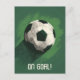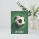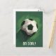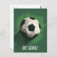 This is a soccer-themed postcard where an illustration of a classic soccer ball placed in the middle against a green background with the customizable default text "on goal!". It is a great design for soccer fans and soccer players.