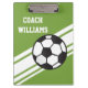 This fun design features white diagonal stripes with a soccer ball. The background is green. I have this design available in a variety of colours. If you don't find what you're looking for just message me. Personalize the front and back with a name, team, phrase or quote. These clipboards are great for a soccer player, coach, physical education teacher, gym teacher, little league coach, or sports athlete. They make great teacher appreciation or holiday gifts.