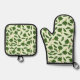 Green Spinach Leaves Pattern Oven Mitt & Pot Holder Set