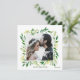 Simple and classy, these wedding save the dates are the perfect way to announce to all of your friends and family about your soon-to-be big spring or summer big day celebration. Features greenery around a frame of the dill, mint, rosemary, thyme, parsley, olive branch, and other leaves that surrounds a photo template. The back is covered by a pattern of the medicinal herbs. All green text is customizable.