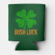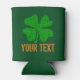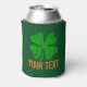 Green St Patricks Day can cooler | Personalizable with name and / or funny quote. Vintage design with 4 leaf clover / Irish shamrock. Cool personalized drinking gift idea for St Paddys Day party. Add custom text.