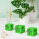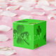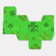 Four-leaf clover favour boxes. Hand out bright green favours on St. Patrick’s Day and put them inside cute paper boxes. Dark green clover leaves cover boxes that come in many styles. “Happy St. Patrick’s Day” text wraps around the outside of the cube shape and is easy to change for a birthday or other gathering. The text may not show, or print in the correct place on other styles - so delete it. Perfect for a kid’s or adult’s celebration of the Irish holiday.