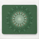 Mandala cosmic diagrams inspiration with thin lines and intricate weaving. The repetitive, eye catching pattern creates a symmetrical design with a transparent lace like visual appearance. The shape's contour follows a zigzag line making the whole image remind of a star. The overall colour choice is fresh based on nice shades of green with a discreet gradient suggesting the strength of nature, life, resurrection, confidence.